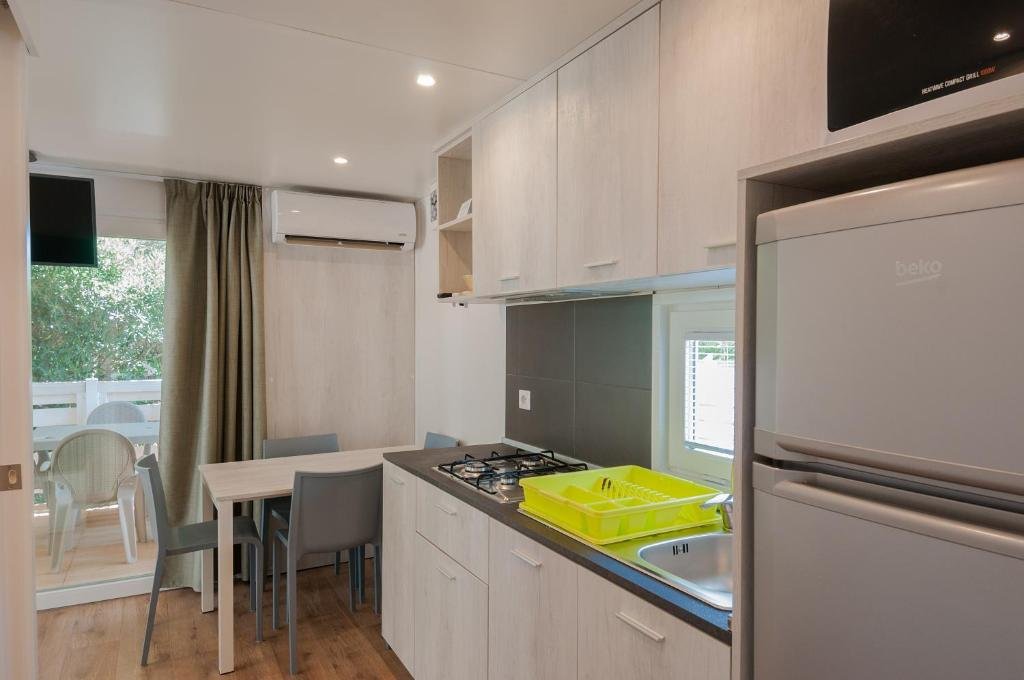 Pet friendly Jesolo Mare Family Village features spacious mobile homes and lodges with fully equipped kitchens, air conditioning, and private fenced verandas perfect for your four-legged companions. The resort provides specialized pet amenities including a Dog Agility course, dedicated grooming areas, and green spaces where dogs can run freely throughout the village.